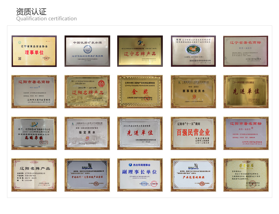 汤泉谷相继获得“国家地理标志保护产品”、“中国优质矿泉水源地——岭秀泉”荣誉后,于2018年荣获得“辽宁好礼”称号标志,礼物首选汤泉谷,守护你的健康。